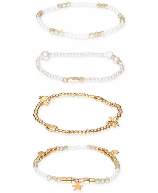 Gold-Tone 4-Pc. Set Star Charm Mixed Bead Stretch Bracelets