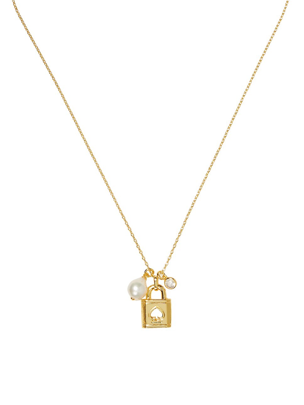 A trio of elegantly chic charms are featured in this luminous pendant necklace fashioned by Kate Spade New York.